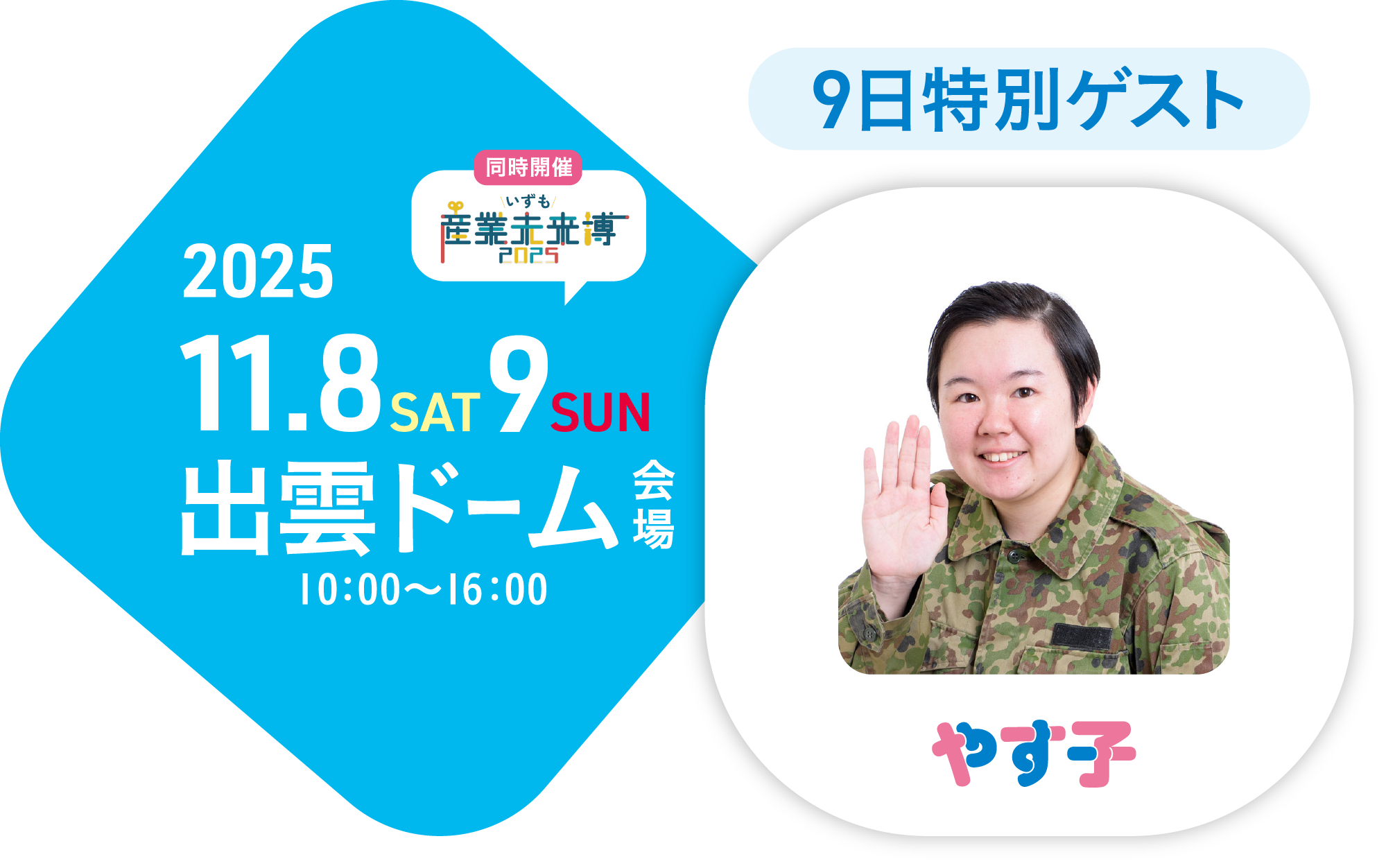 11月8日(土)・9日(日)出雲ドームを会場に10:00~16:00に開催。2026年1月25日(日)グラントワを会場に10:00~16:00に開催。どちらの会場も入場無料。